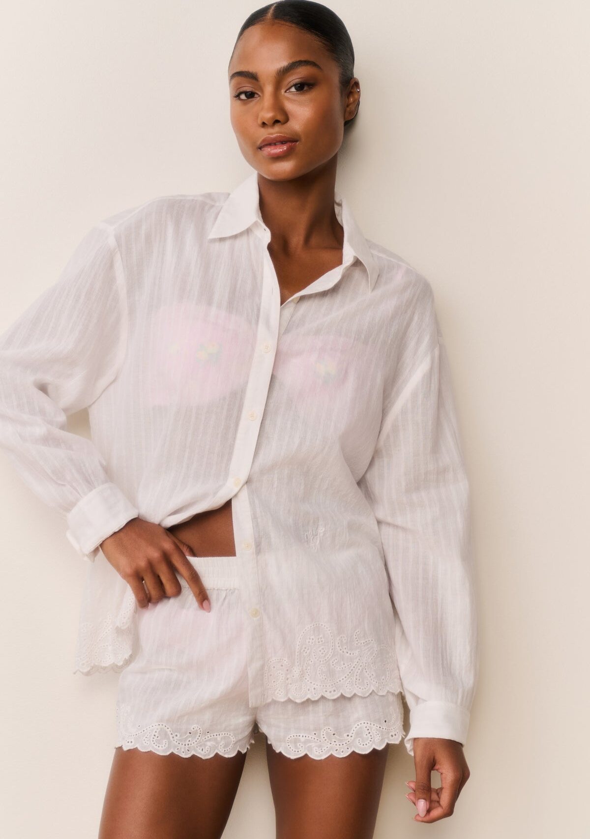 LOVESHACKFANCY-OCEAN EMBROIDERED COTTON COVER-UP SHORTS