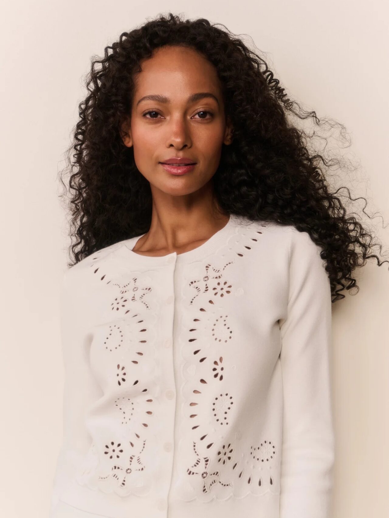 LOVESHACKFANCY-LEDA BANDANA EYELET KNIT CARDIGAN