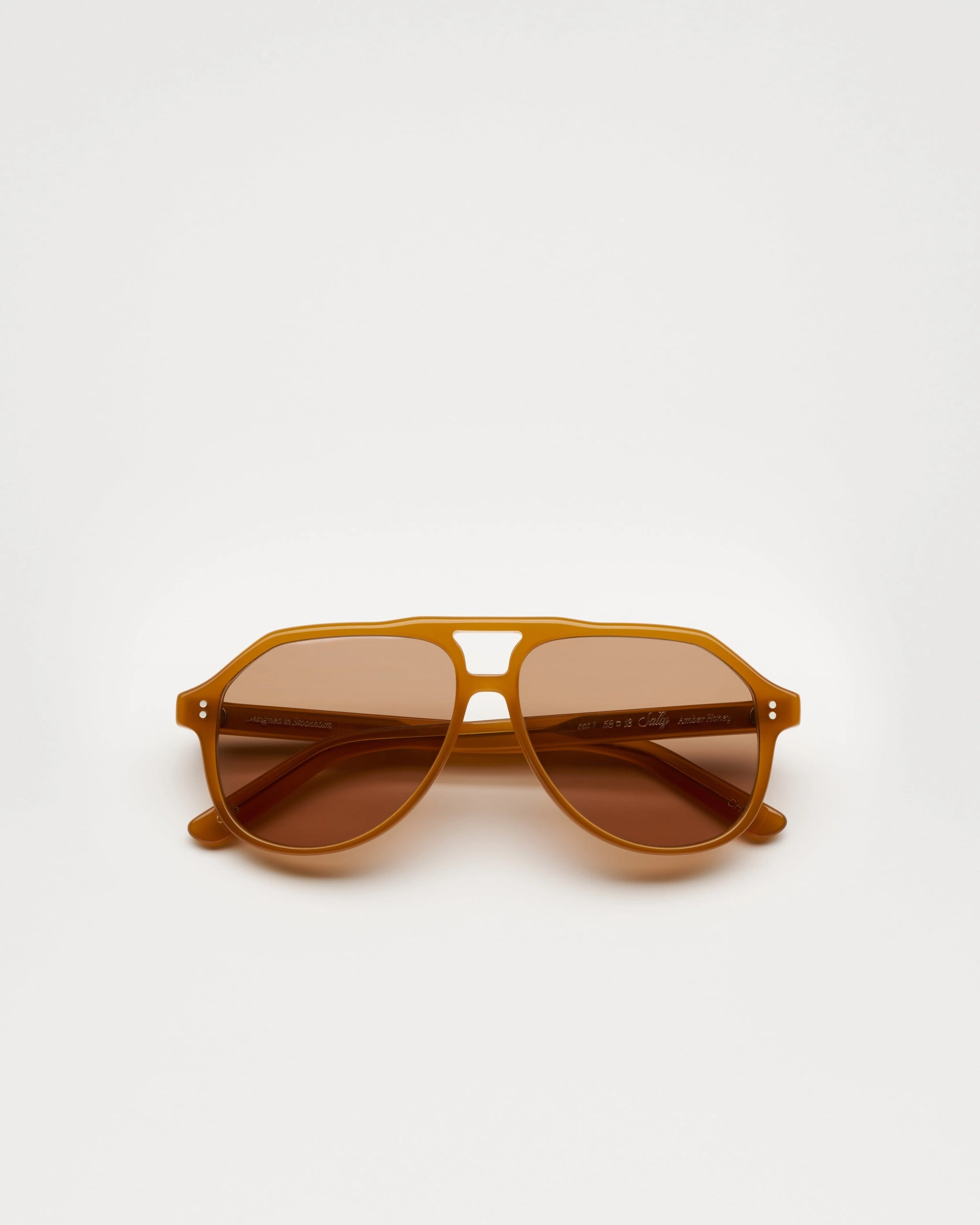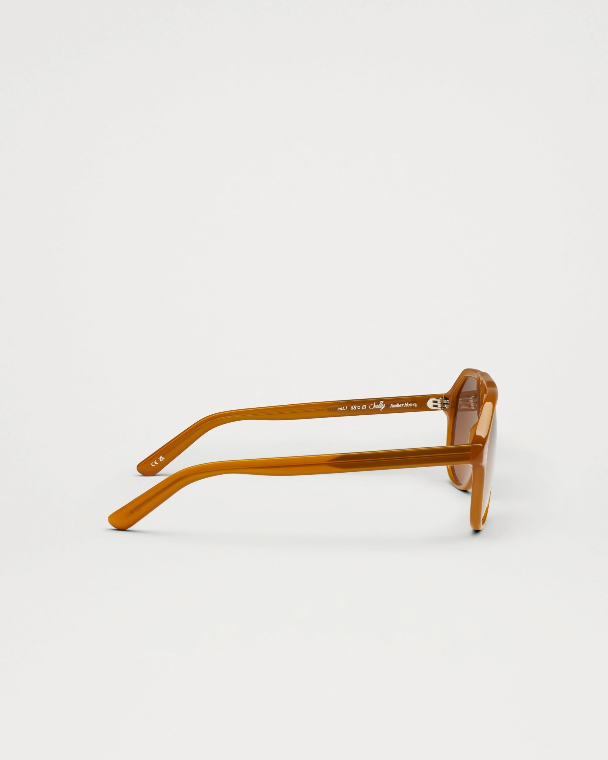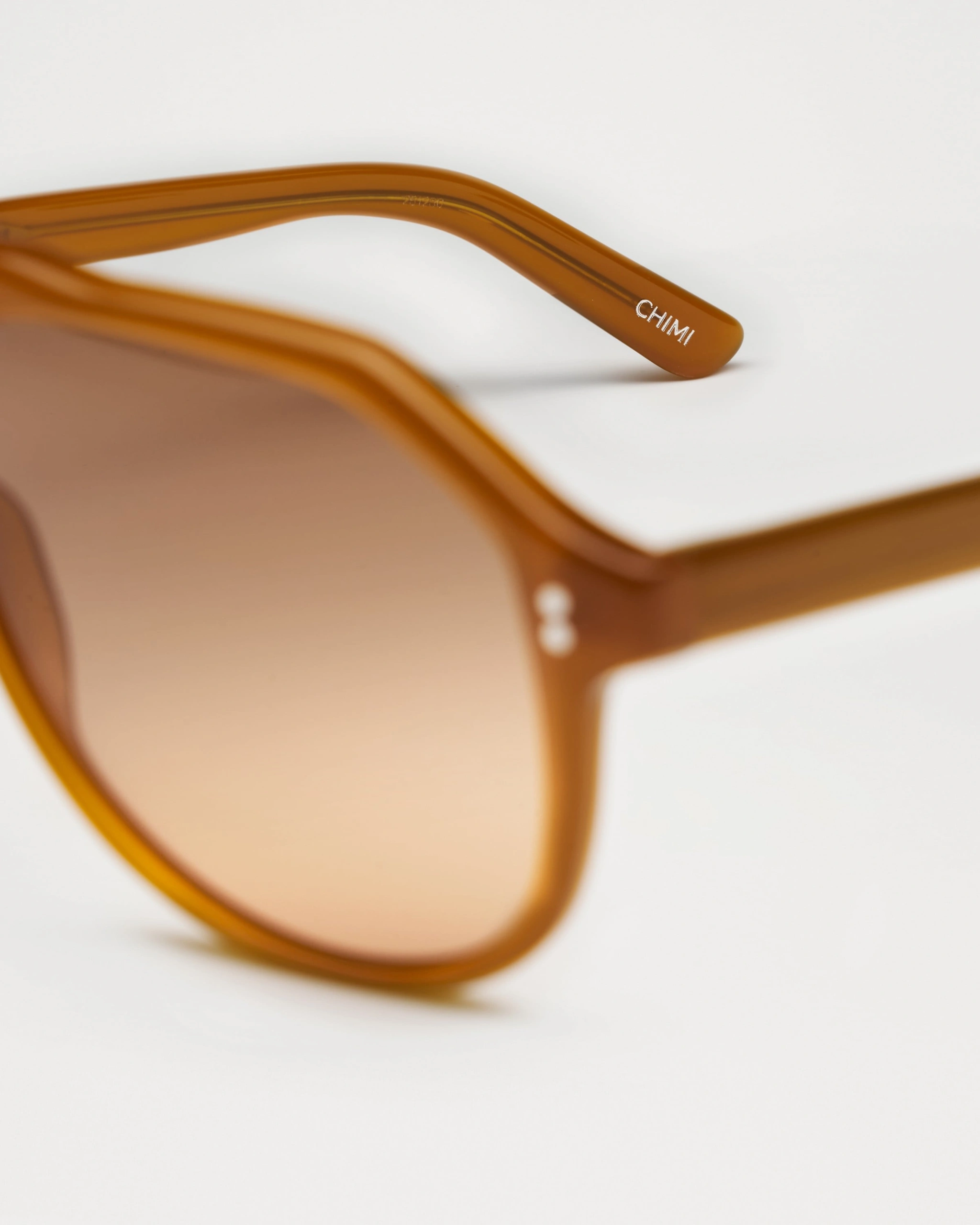 An aviator silhouette with structured contours and arched double bridge. Finished with custom made metal detailing characterized by our signature metal trim.