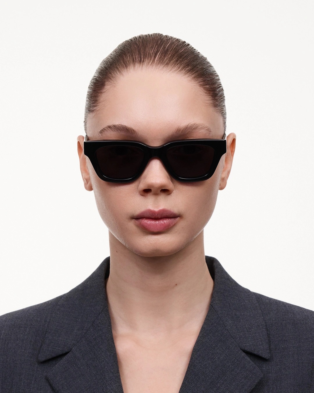11 is an androgynous and angular silhouette. The thick frame is designed to feel graphic and strong, balancing audacious proportions with refined curvature and sleek, beveled temples. Fitted with softly rounded UV-protective CR39 lenses.