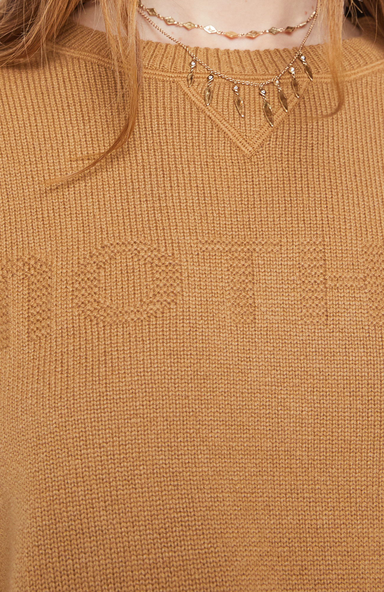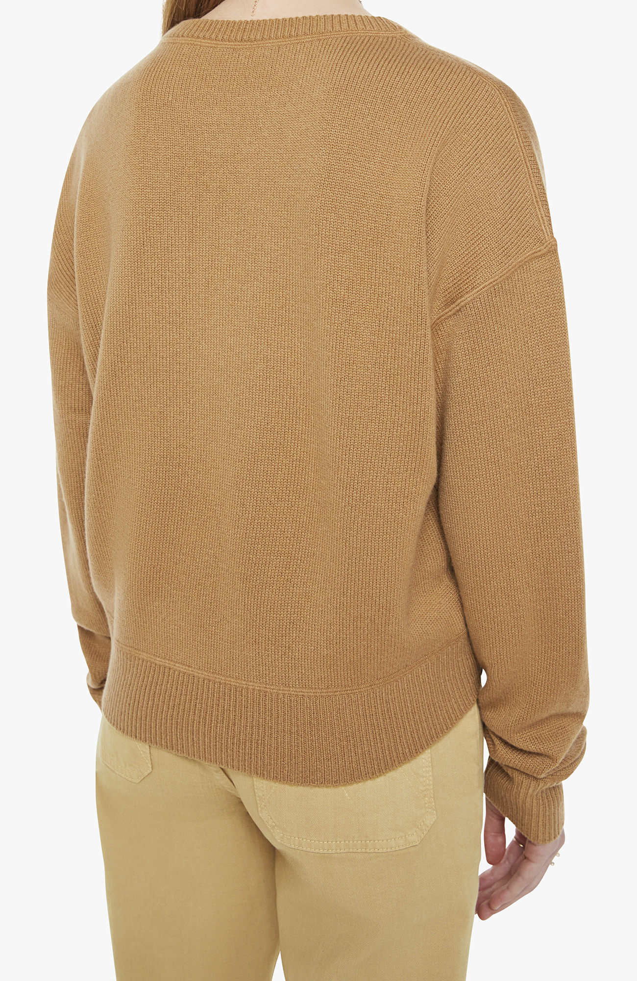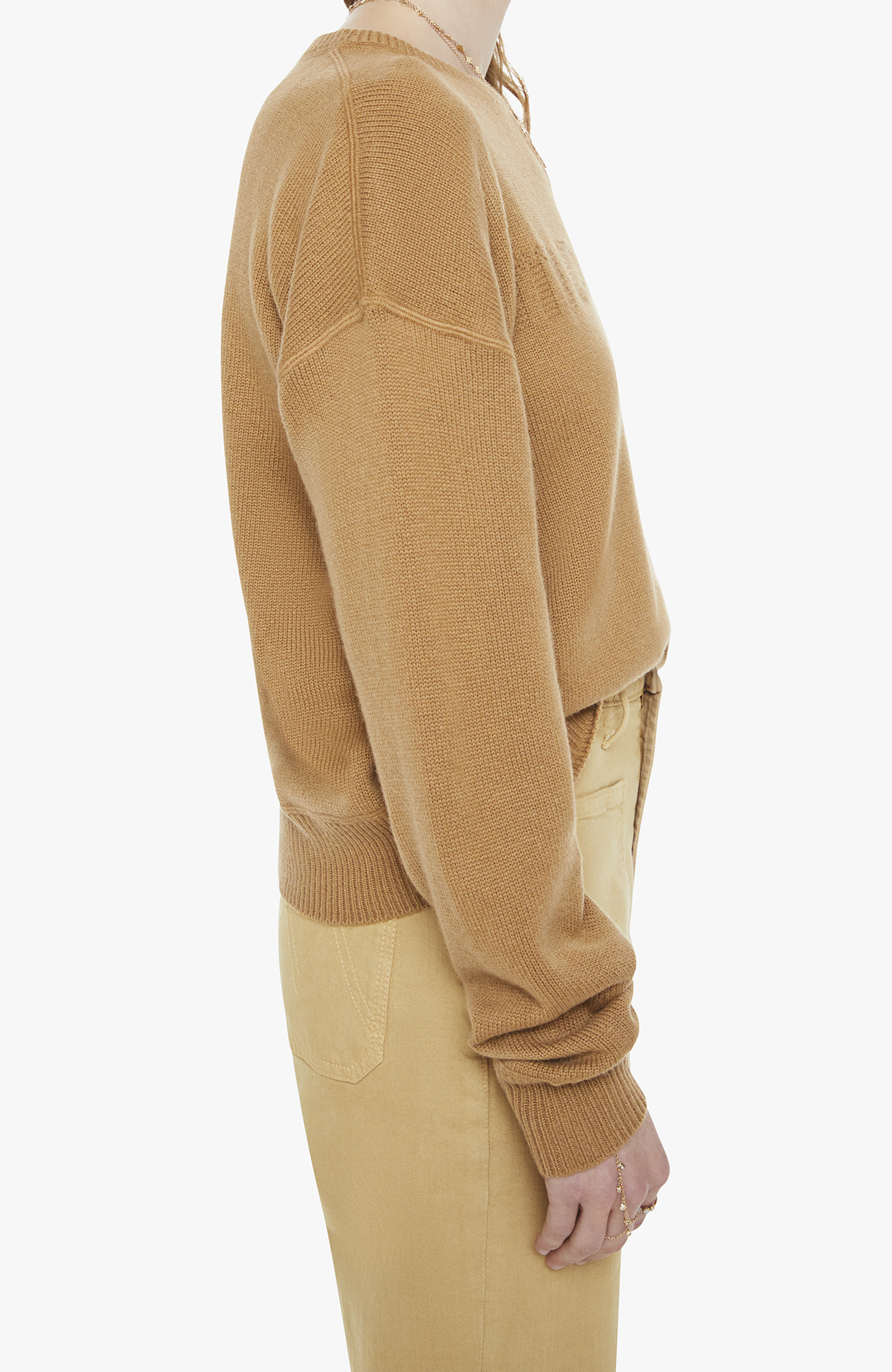 A crewneck sweater with drop shoulders, ribbed hems and an oversized fit. The Logo Jumper is made from 100% cashmere in camel with MOTHER's name across the chest.