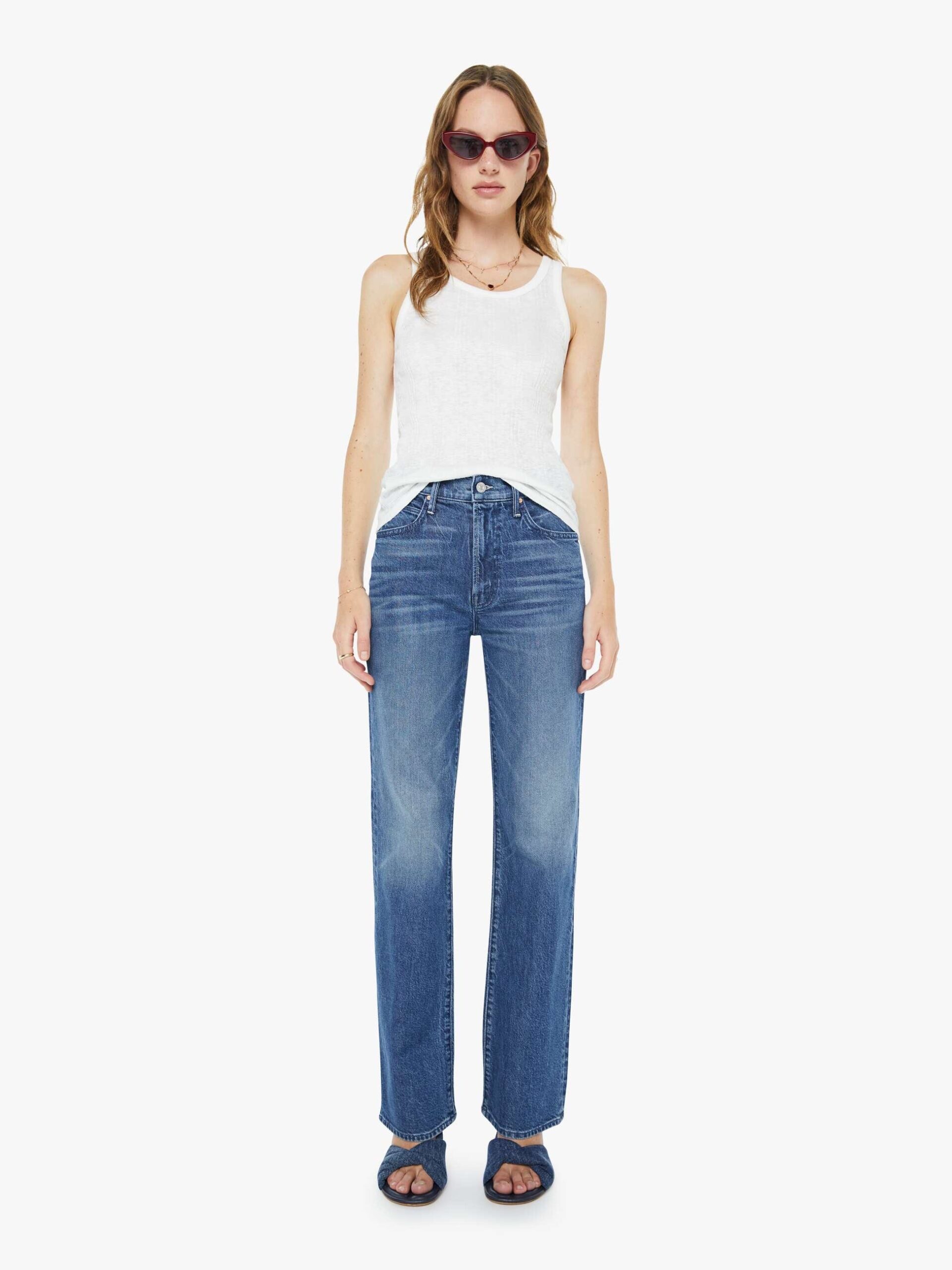 An expanded collection of foundational pieces designed for All Day, Every Day. Created for versatility, layering, and year-round wearability, these are the pieces you will never stop reaching for. A classic button-up with a curved hem and MOTHER's name embroidered on the chest. Made from 100% cotton, The Bestie is designed in light blue.