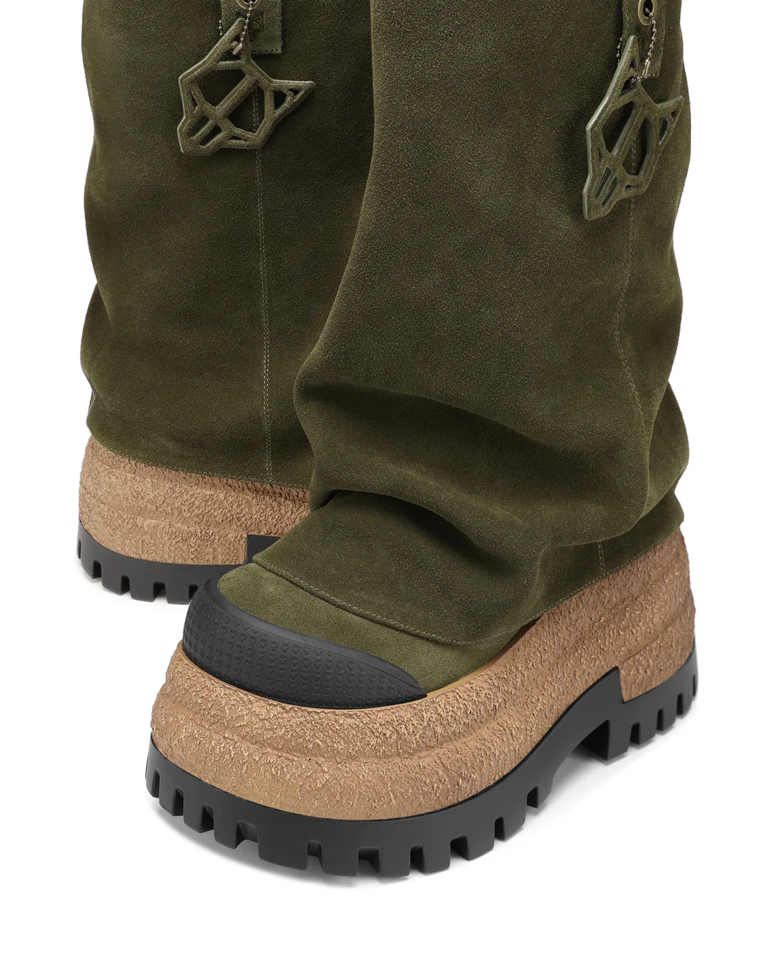 Introducing Disturb, our latest 90mm chunky boot with an asymmetric toe shape, designed for those who appreciate bold fashion statements. This boot features a wide leg fit for comfort and style, complemented by a distinctive Wolfe head ball charm for added flair. It also includes new rubber toe and heel pieces, combining durability with a modern aesthetic. Perfect for trendsetters seeking both edge and elegance, this boot is a must-have for any fashion-forward wardrobe.
