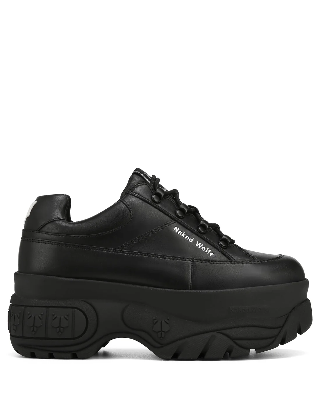 90's inspired platform chunky lace up sneaker featuring the Naked Wolfe Rubber Wolfe head plaque and side branding.