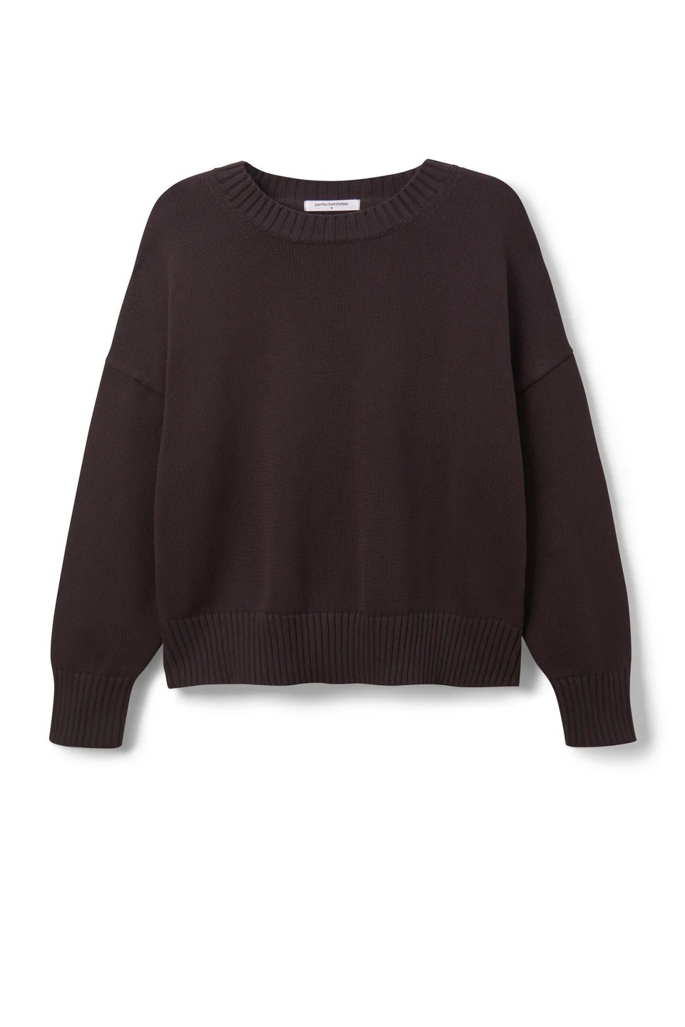 this sweater is made from 100% cotton for a soft, slouchy vibe with ribbed detail on cuffs and hem.