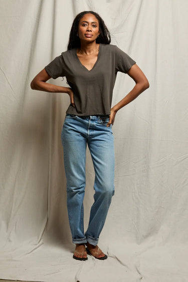 why we love it: the boxy fit brings something extra to the classic v-neck.