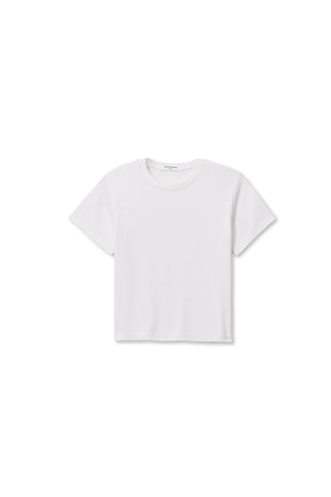 the fitz is the base layer that you can trust. featuring a classic crew neck and fine-ribbed texture, this short-sleeve staple is cut with a bozy, slightly cropped silhouette crafted from a slinky, lightweight fabric.