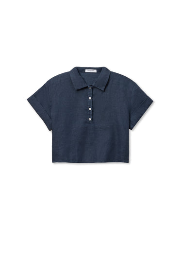 linen collared cropped polo tee