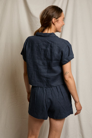 linen, but make it a polo. the tabitha is our answer to dressing in the heat. an airy, 100% linen top that trades the stuffiness of a traditional collared shirt for an open neckline and sharp boxy with a slightly cropped hem. It’s got that crisp texture that only gets better with sunshine.