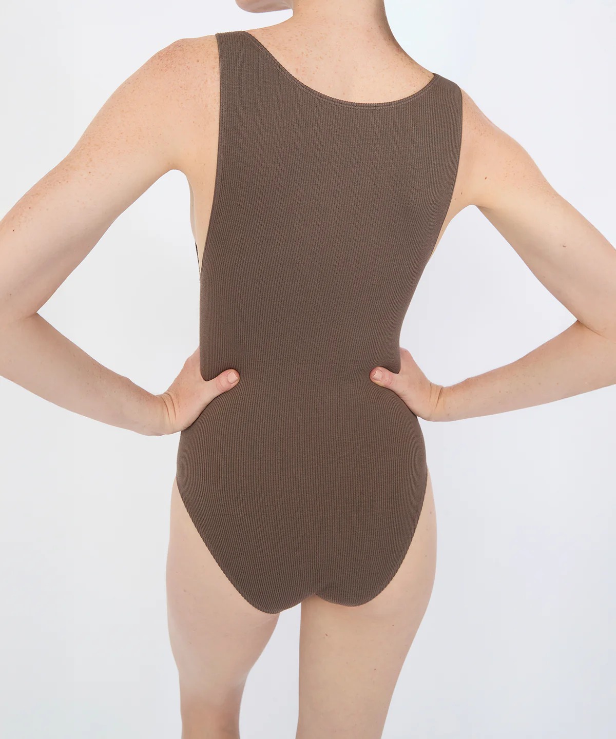 בגד גוף בגזרה צמודה וחובקת גוף, עם מפתח צוואר גבוה וגב סגור. בגד הגוף מעוצב מבד ריב רך במיוחד, המציע נוחות בלתי מתפשרת לאורך כל היום והופך אותו לפריט בסיס ורסטילי שמתאים בקלות למגוון מראות ולוקים. הפריט מוצע בגוון לבן פנינה בהיר, בהשראת קרני אור רכות.