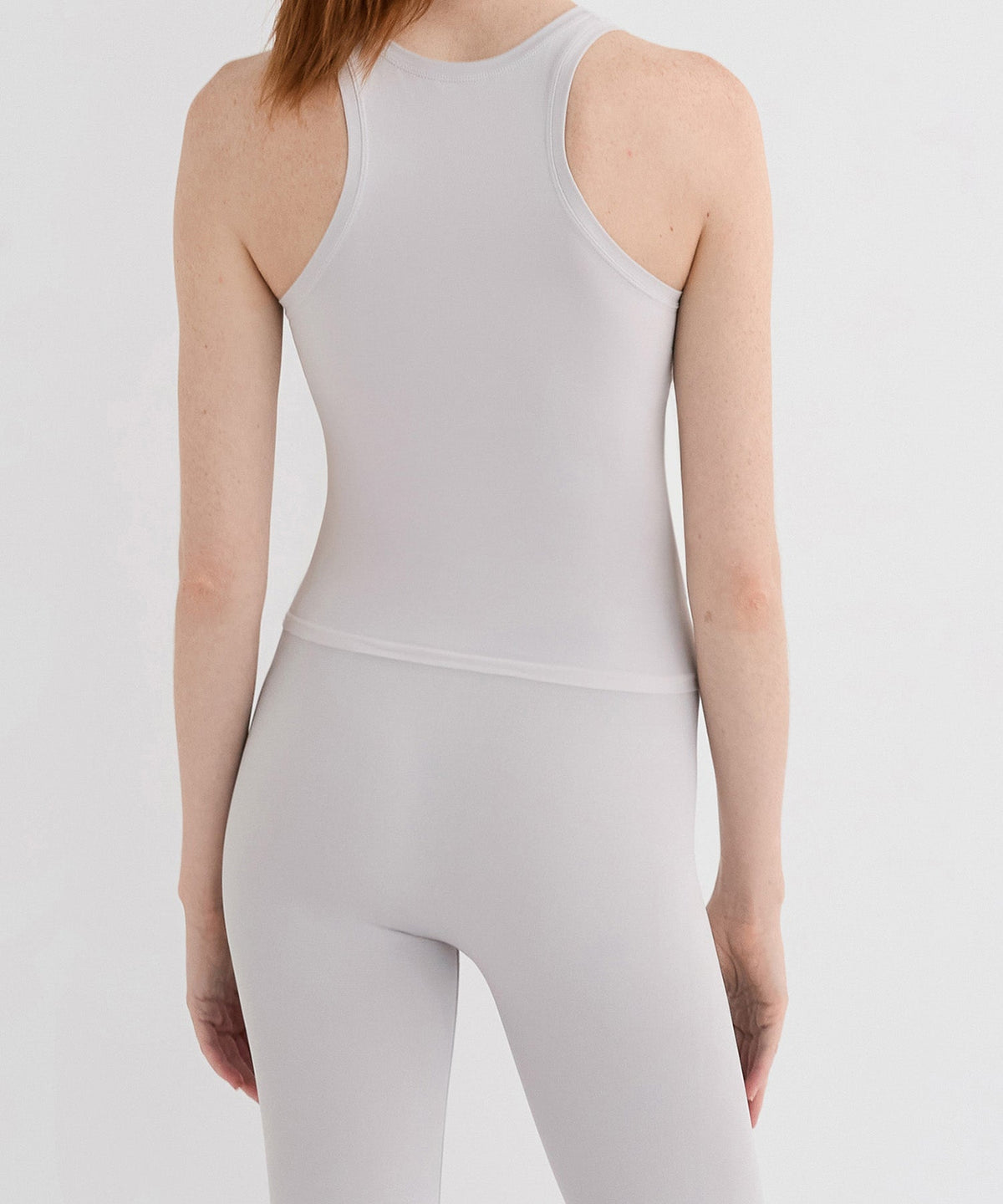 גופייה עם מפתח צוואר גבוה ועגול – פריט בסיס יומיומי בגזרה נוחה במיוחד. הגופייה מעוצבת ללא תפרים, בקווים נקיים, ומעניקה תחושת לבישה רכה ועוטפת. דגם זה מוצע בגוון אפור רך, בהשראת חלוקי נחל המלוטשים בתנועת המים.